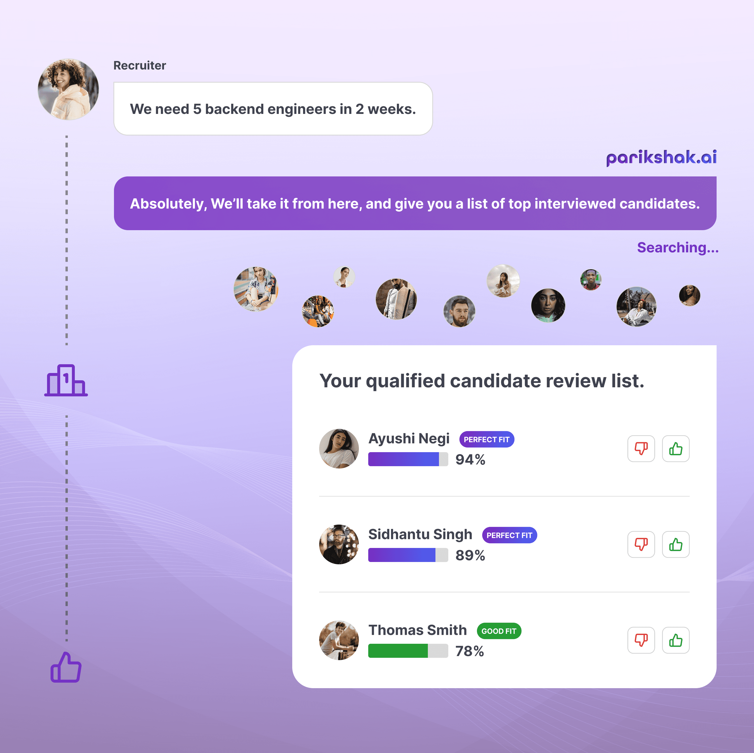 Every shortlisted candidate goes through Parikshakโs proprietary AI Interview Engine,